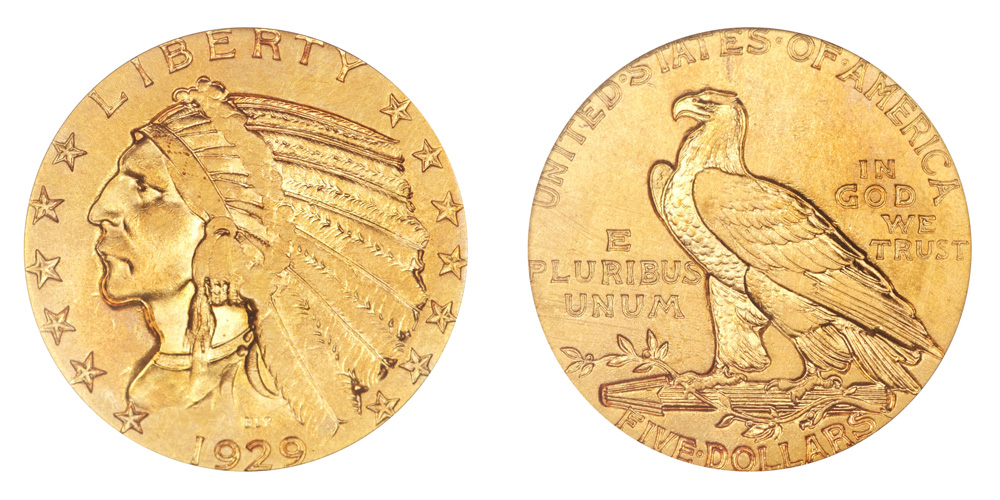 Along with these, since the 1980s, your government has issued gold coins in one-ounce and fraction-of-an-ounce weights in nominal denominations of $50 (for one ounce) on down to $5 (for one tenth of an ounce). Coins in palladium and platinum are also sold by the U.S. Mint.
