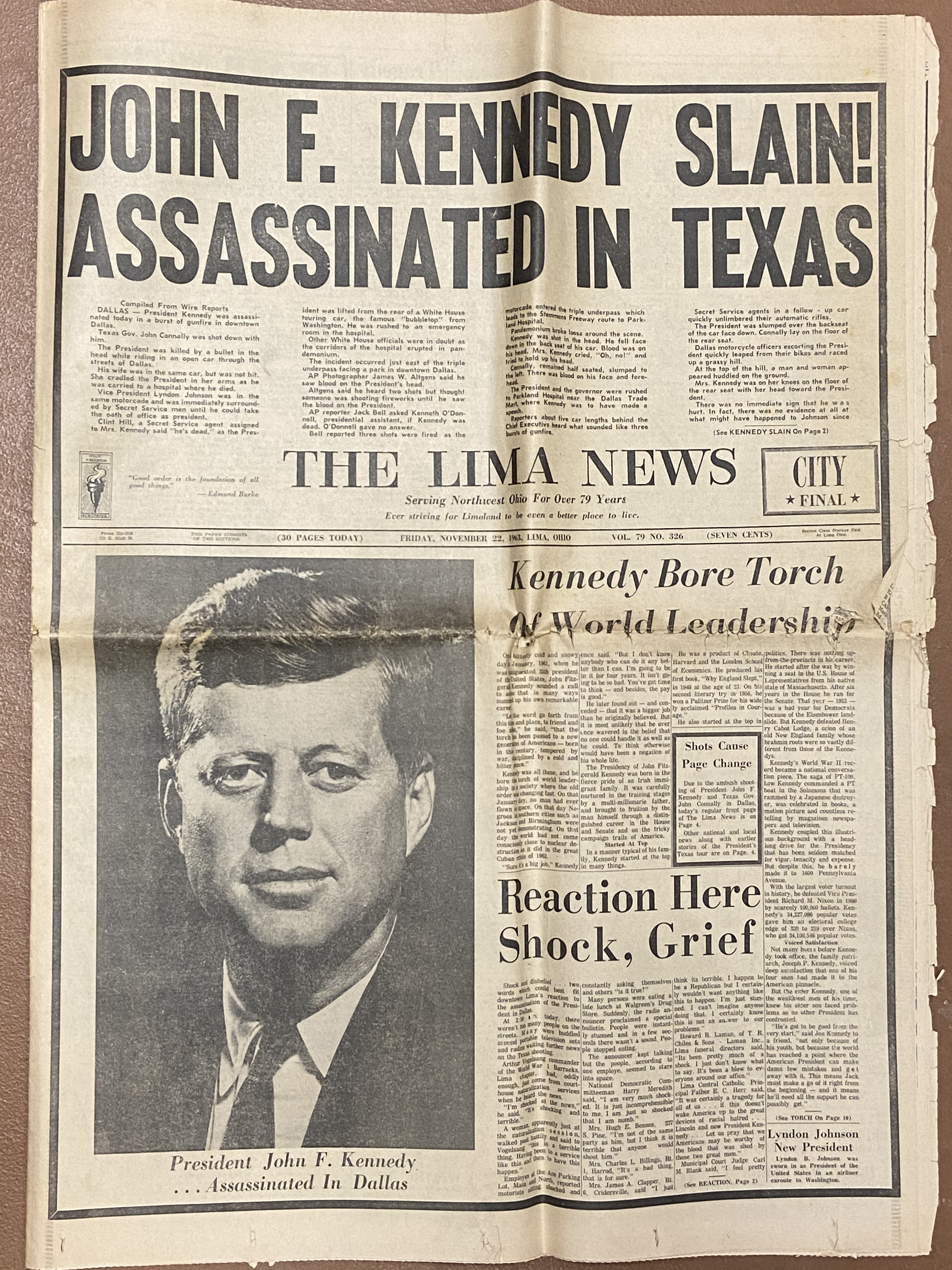 President John F. Kennedy was assassinated in November, 1963. I was 13 and sitting in Miss Whitling’s seventh grade math class when the announcement was made over the loudspeakers at the end of the school day. Here is that afternoon’s Lima News that I have saved ever since that day. For 1964, at the direction of Congress, the Bureau of the Mint replaced Ben Franklin on the silver half dollar coin with an image of Jack Kennedy. In 1964 the Mint issued more than 281 million Kennedy half dollars — still in coin silver as were the 1964 quarters and dimes.