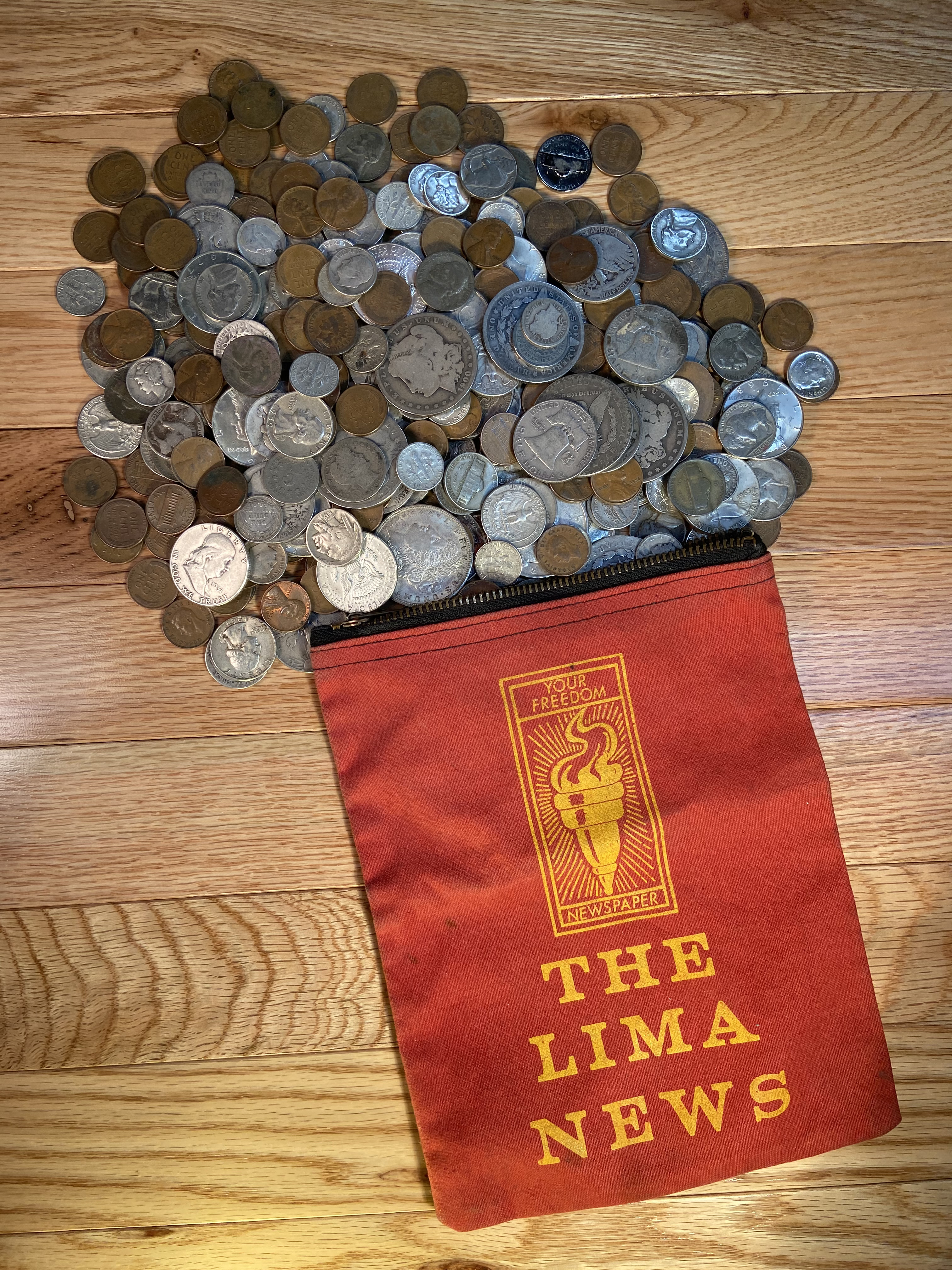 Silver dollars in circulation were well worn and not desirable to serious coin collectors. As a child, though, I collected coins of any condition in Whitman folders. I still have some of that small change, including the Lima News coin bag shown here, still full of coins of the era.