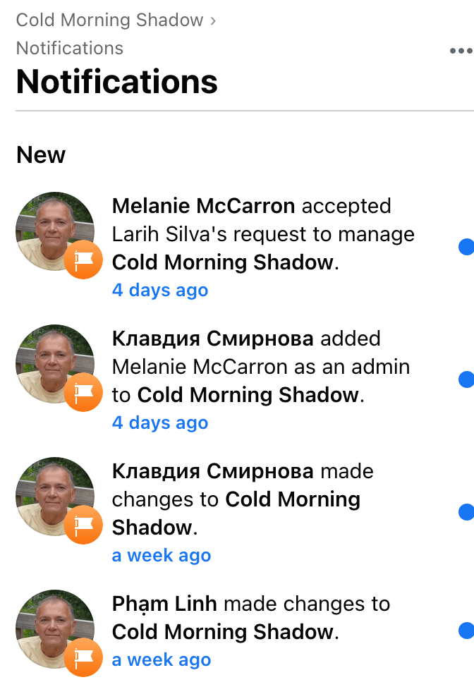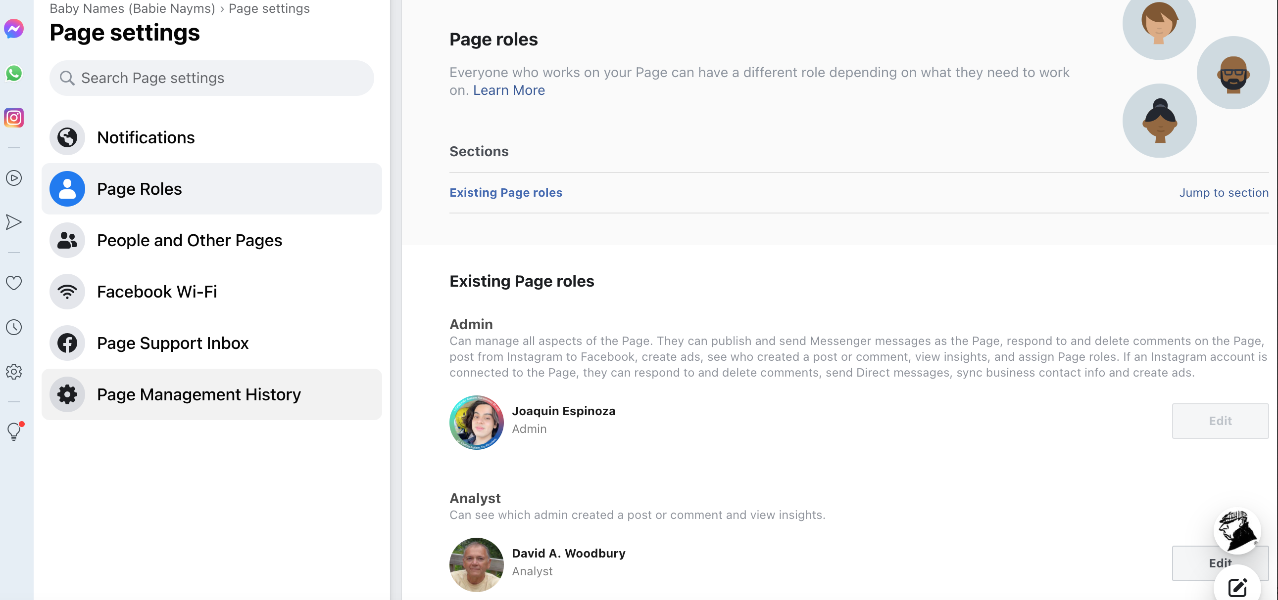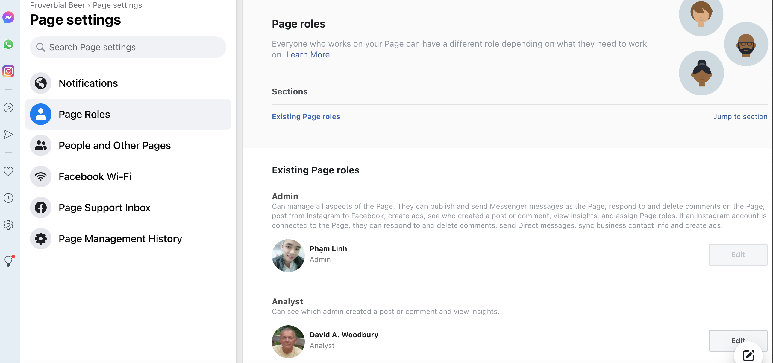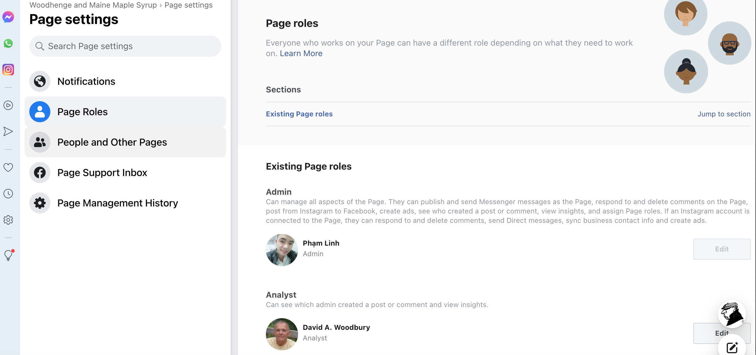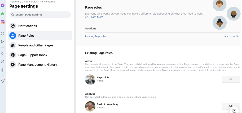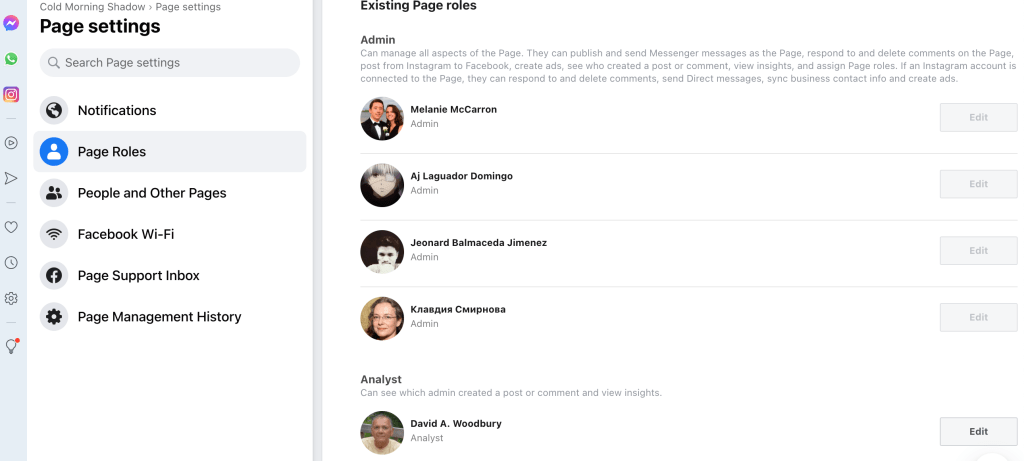 I did some more digging into the settings for my compromised pages and found lists of people who had been assigned “admin” privileges in each one, reducing me to “analyst” on each of them — in other words, no control. I took screen shots.
