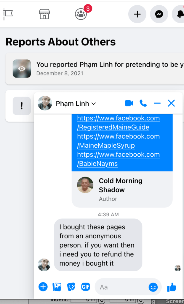 - As a Meta/Facebook employee, Phạm Linh bought my pages from some source that sells Facebook identities.